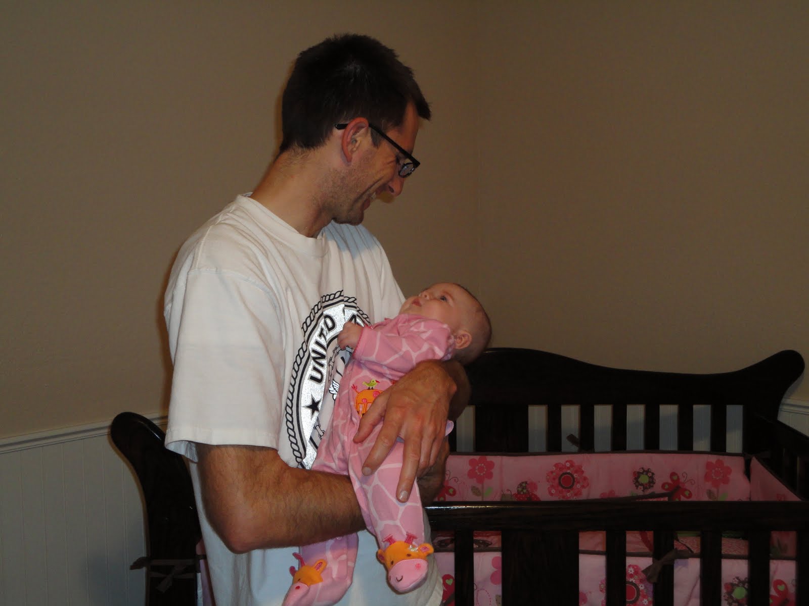 Since we've moved into the new house, Jaycee has been in the crib and sharing a room with Morgan. I was so afraid she was going to wake up Morgan all night but in two weeks, she hasn't woke her up once. Dad is proud to have daughter #2 in his crib.